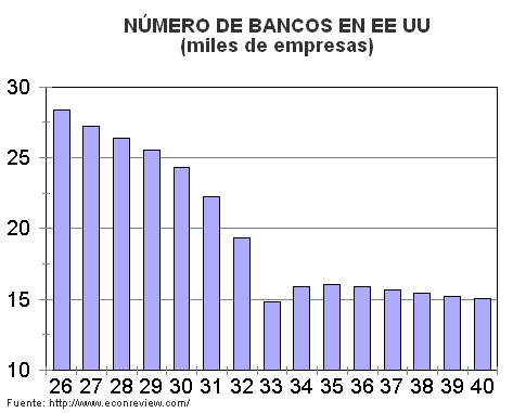 - En EE UU había muchos bancos pero de pequeño tamaño, lo que les daba una escasa capacidad de resistencia en situaciones de crisis.