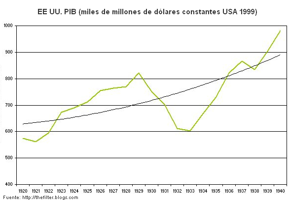 - ¿Al nivel de qué año descendió el PIB norteamericano en la Gran Depresión? ¿cuántos años de crecimiento económico se perdieron?