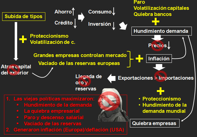 Vamos a trabajar sobre ello, intentando comprender como esas políticas equivocadas colaboraron a que el crack se transformase en la Gran Depresión.